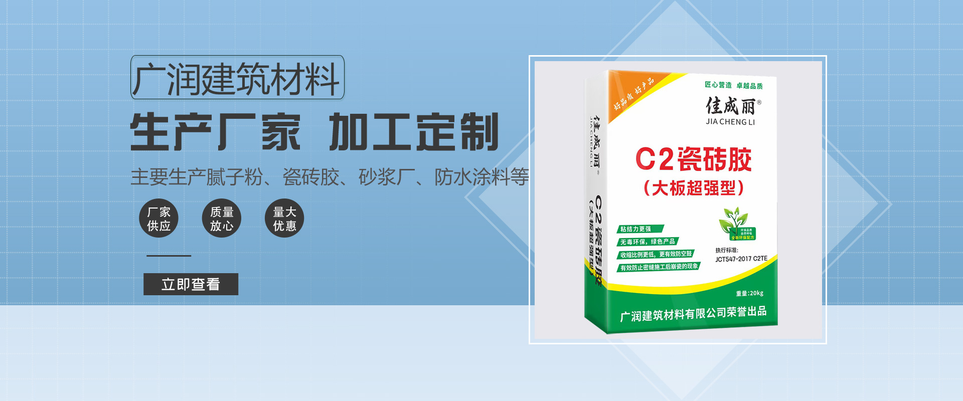 廣西廣潤建筑材料有限公司一直致力于高品質(zhì)的新型膩?zhàn)拥难兄?,已取得了多?xiàng)科研成果。開發(fā)出一系列廣受市場歡迎的涂料產(chǎn)品,集研發(fā)、生產(chǎn)、銷售于一體的建筑材料制造企業(yè)。廣西廣潤建筑材料有限公司會(huì)聚了具豐富經(jīng)驗(yàn)的專業(yè)技術(shù)人才及高素質(zhì)的管理隊(duì)伍。主要從事生產(chǎn),水性環(huán)保鋼化膩?zhàn)臃郏鈮椥?、柔性、抗裂型膩?zhàn)臃?、?nèi)墻防水膩?zhàn)臃鄣戎懈邫n建材產(chǎn)品。廣西廣潤建筑材料有限公司開業(yè)至今,本著“求實(shí)、進(jìn)取、信譽(yù)為本、客戶至上”的宗旨,積極開拓業(yè)務(wù),取得了優(yōu)異成績,……